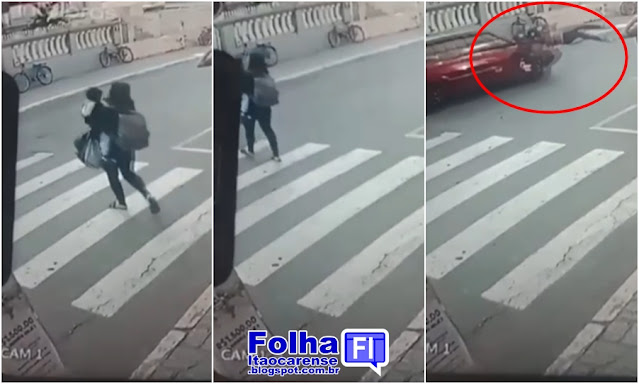 Uma mulher de 23 anos e uma criança de 03 anos foram atropeladas por um carro de passeio, ao atravessarem a rua pela faixa de pedestre.